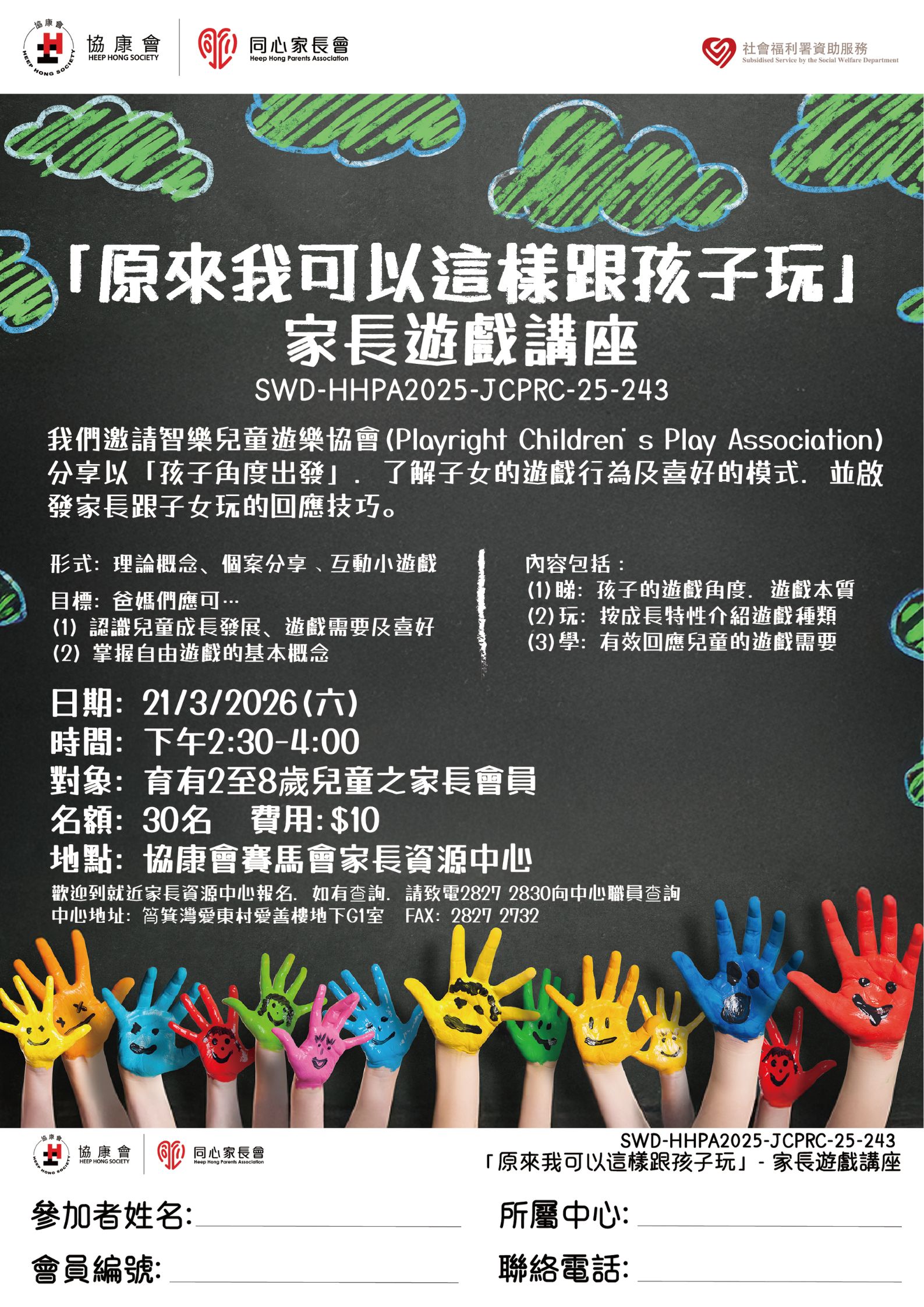「原來我可以這樣跟孩子玩」家長遊戲講座 (SWD-HHPA2025-JCPRC-25-243)